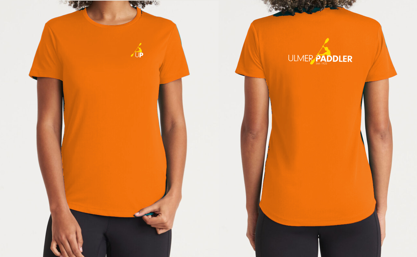 Damen-Funktions-Shirt Orange: Size M: Logo UlmerPaddler (vorne groß)/Weiß-Gelb